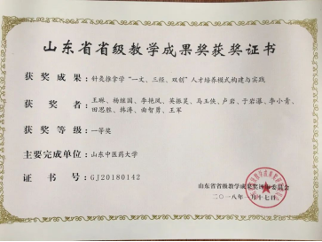 在长期的专业建设和实践中,构建了“3C+E”的针灸推拿专业实践创新人才培养模式,即针推经典理论学(Classics of Acumox)、针推临床实践(Clinical skill of Acumox)、创新能力培养(Creative ability)、英语应用能力培养(English application ability)。2014年获山东省教学成果一等奖。