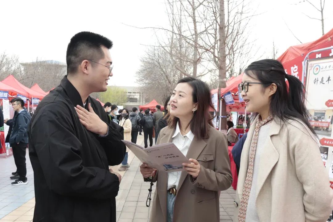的摊位前,工作人员积极与前来咨询的同学和用人单位进行交流,搭建起“面对面”“零距离”的交流平台,同时还向大家介绍了针灸推拿学专业的专业定位、学科优势,育人成效等。