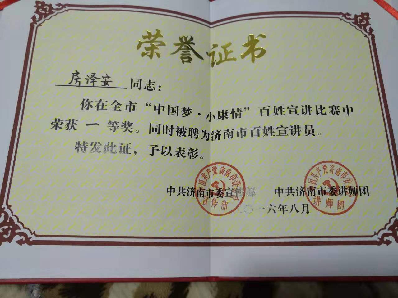 曾获荣誉:山东好人、山东百名最美志愿者、槐荫区道德模范、济南第二届十大幸福家庭、济南十大真情故事人物、济南文明城市模范市民