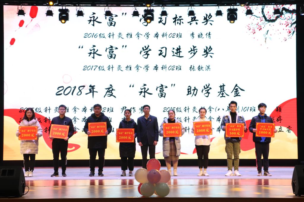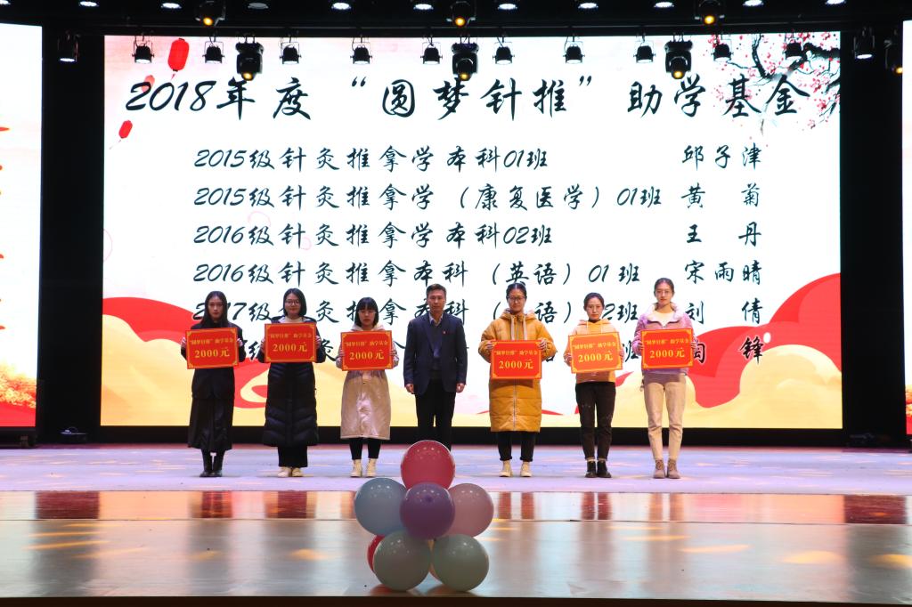 党总支书记王锋向获得“圆梦针推”助学基金的受助学生颁奖