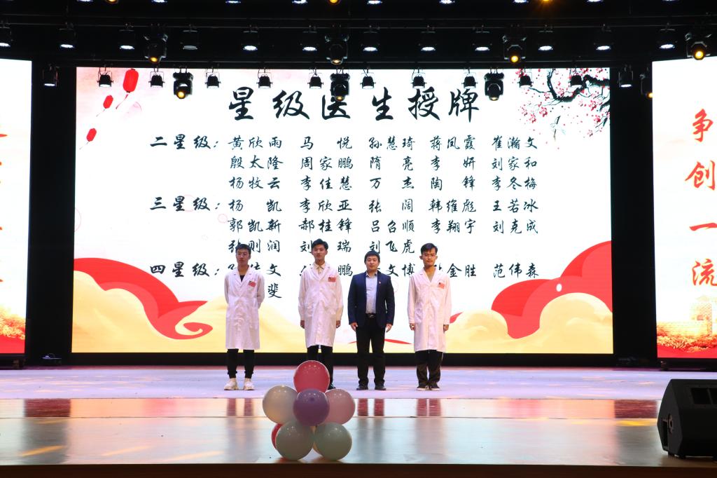 党总支副书记张继伟为获得“二星级医生”称号的同学代表授牌