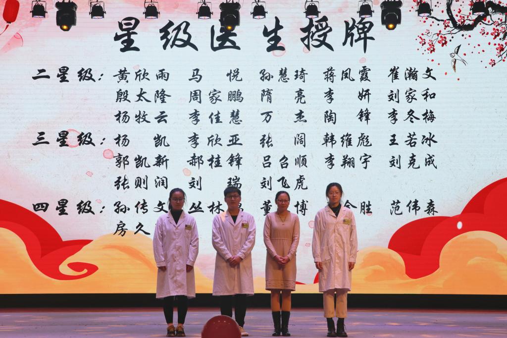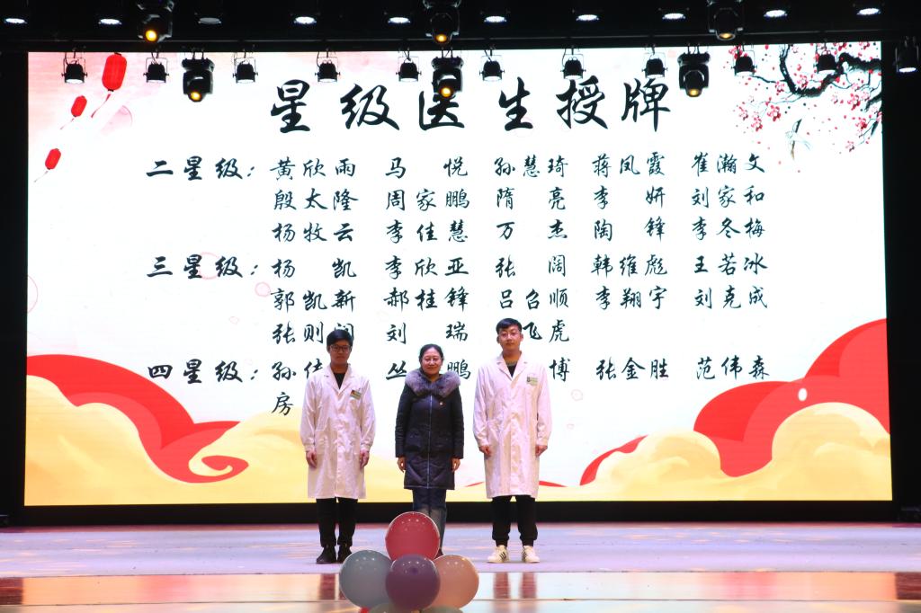 副院长孔庆悦为获得“三星级医生”称号的同学代表授牌