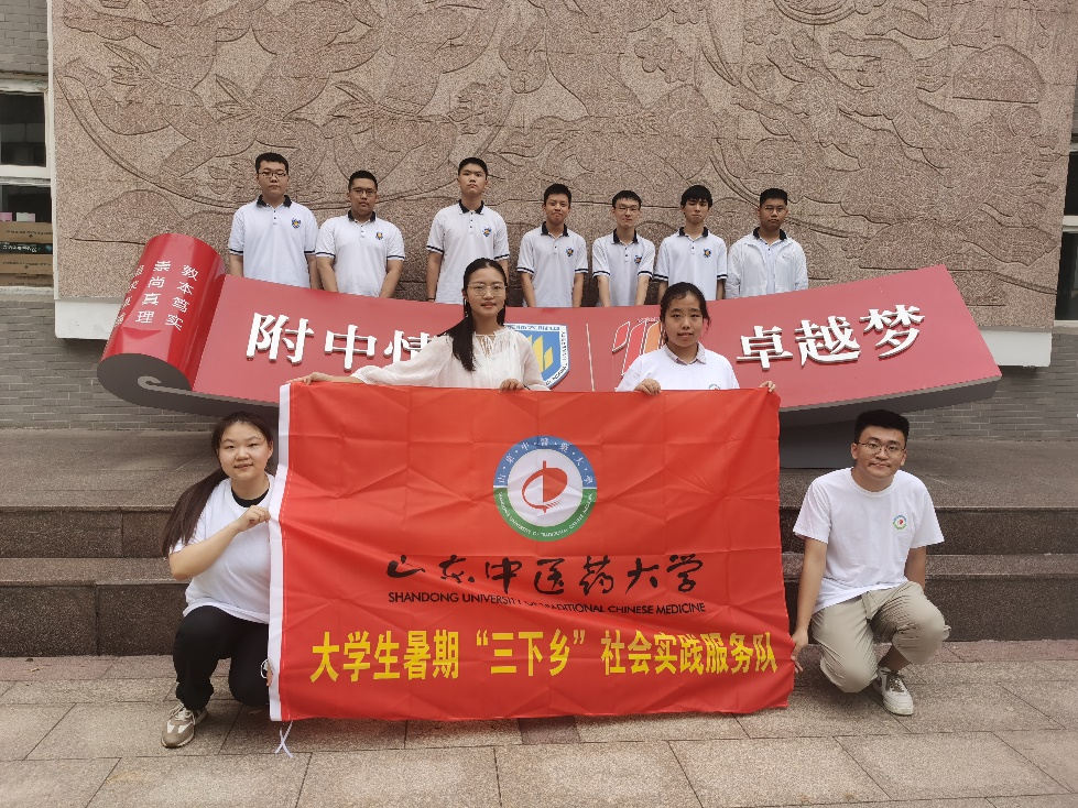 为了传承与弘扬中医药文化,加强学校招生宣传工作,2022年7月11日下午,韩国三级 副院长孔庆悦、教学秘书高青、中医韩国三级 郑红教授、学生李天骄、张嘉辰、陈鑫、王丽娜、杨钰来到山东师范大学附属中学开展中医药文化进校园、专业宣讲等暑期实践活动。