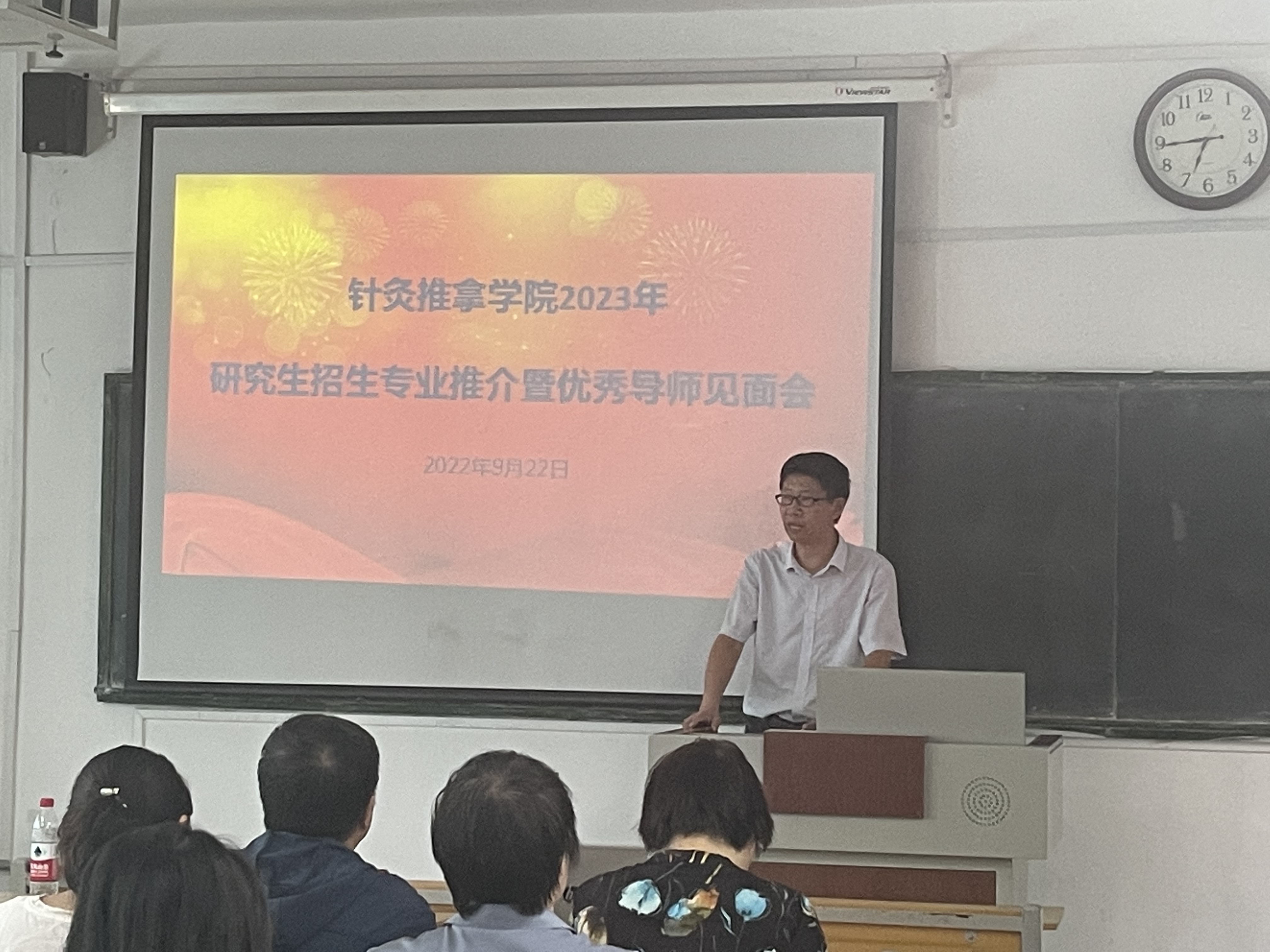 的基本情况、优势学科、特色专业、导师团队等。研究生教学秘书李春静简要介绍了学校2023年硕士研究生招生、推免政策。优秀导师代表依次详细介绍了自己的专业方向、研究成果、带教情况等。
