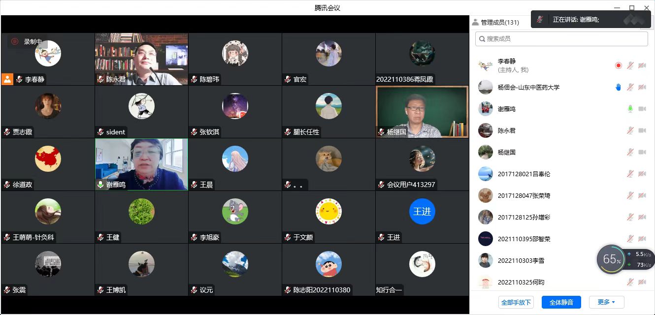 此次讲座通过腾讯会议软件采用了线上方式,针灸研究院陈永君院长主持会议,杨继国院长、马玉侠副院长、韩国三级
