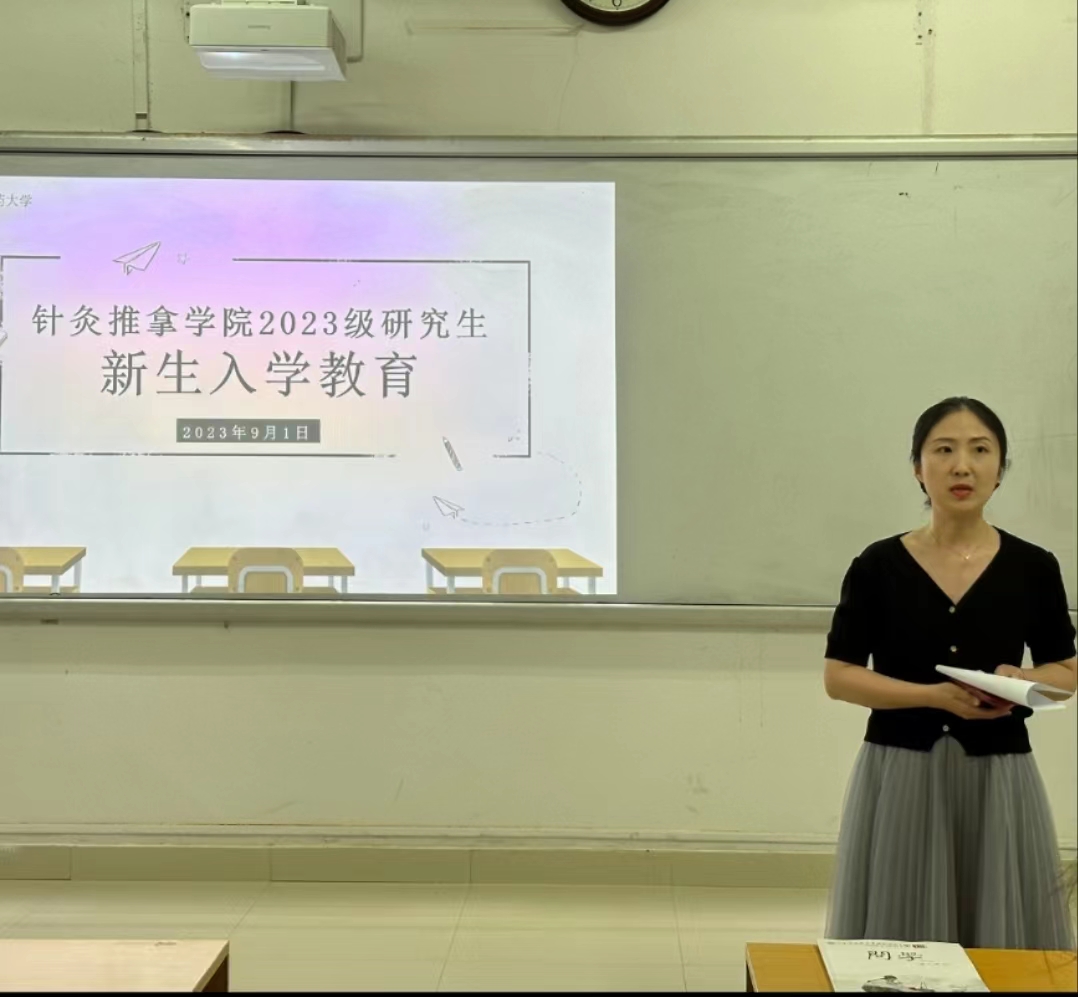 会上还举办了专业讲座。推拿教研室主任井夫杰教授结合学科专业特色、专业现状、发展前景等,寄语同学们一定要互帮互助,团结友爱;要知行合一,不能“躺平”,要提高科研创新能力,注重知识积累;要精于专业,通晓各科,专注临床,注重医患有效沟通,提升专业临床素质和综合能力。