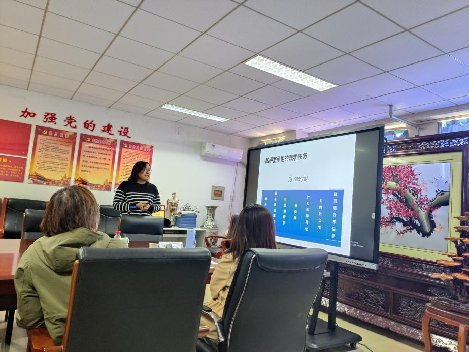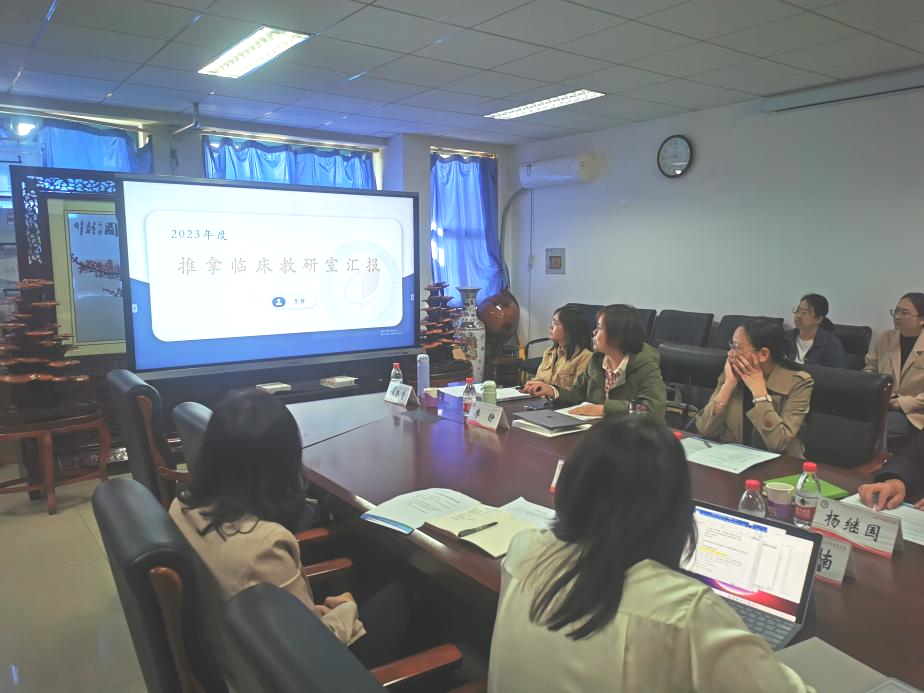 教师对专家的来访表示热烈欢迎,从专业发展沿革情况、专业培养目标、师资队伍、培养过程与课程体系、教学建设与改革等8个方面汇报了针灸推拿专业建设情况。刺灸治疗教研室和推拿临床教研室简要介绍教研室基本情况、取得的成绩和教研室特色活动。焦楠主任充分肯定了针推韩国三级