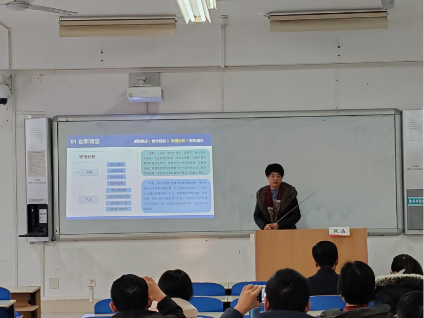 张教授为青年教师介绍了高校教师教学创新大赛的文件要求、比赛流程、省赛和国赛结果等内容,现场演示了当时比赛的场景并与青年教师们分享了自己的参赛经验、心得、感悟。