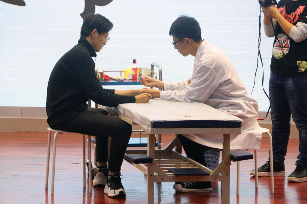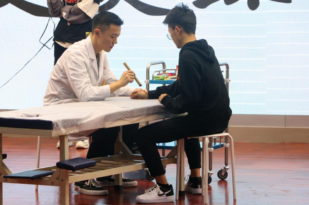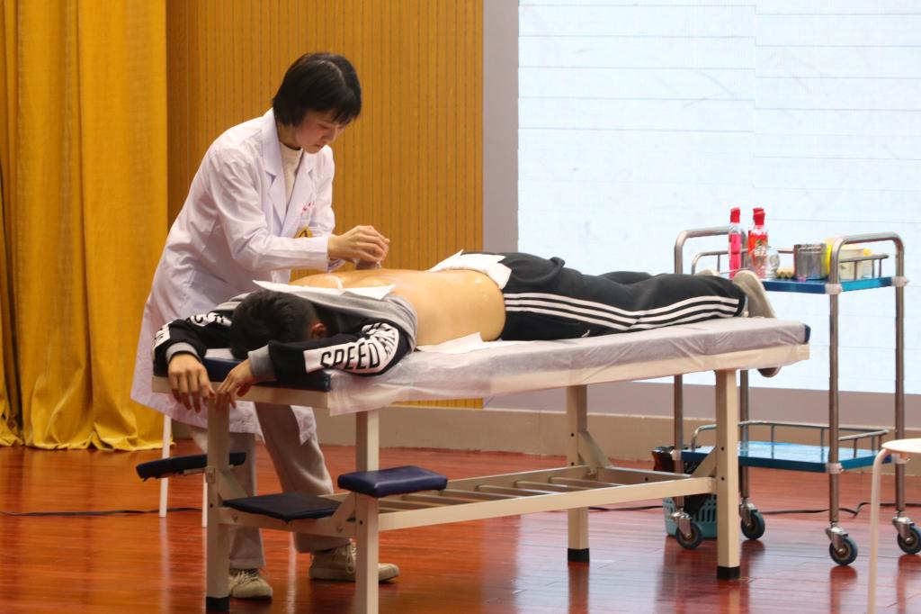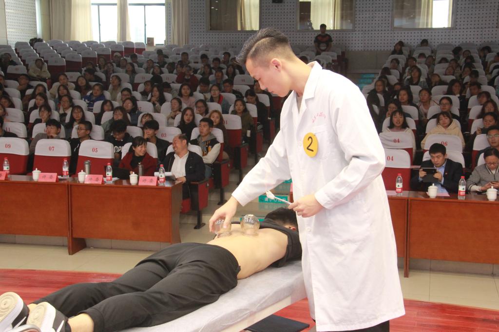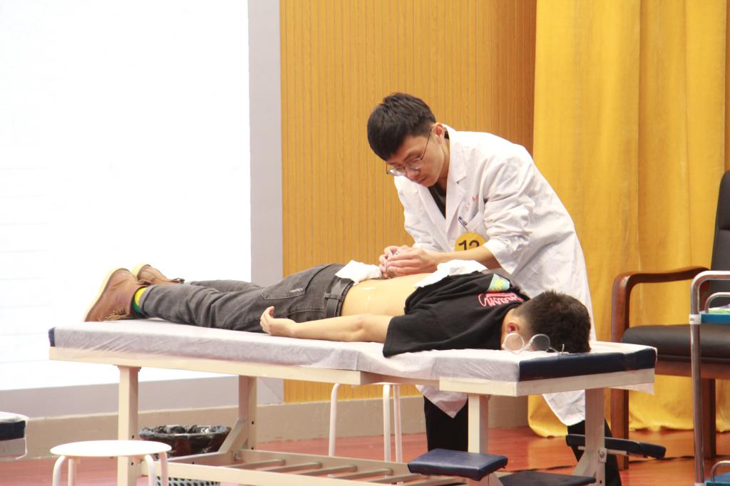 本次比赛分为腧穴定位与针刺、推拿、拔罐、艾灸四个环节。