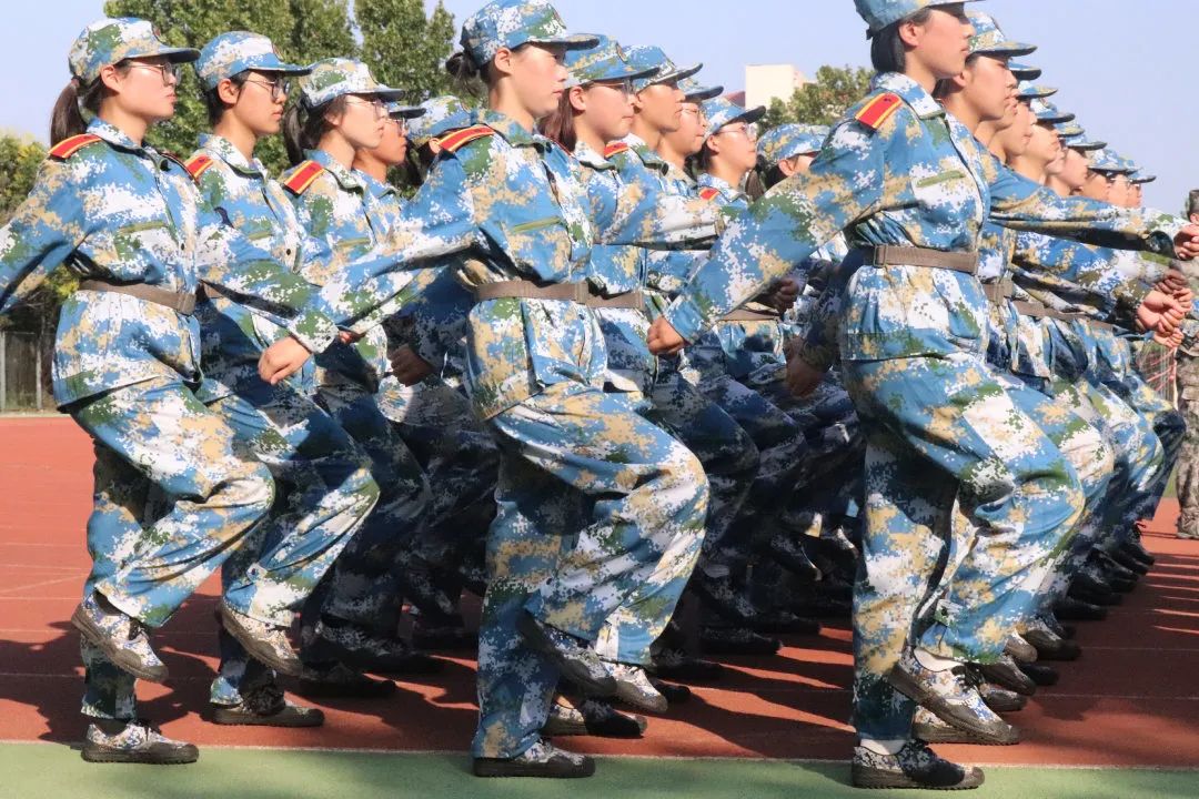 军训汇演上,“战士们”意气风发,自信从容,步伐整齐划一、口号声振寰宇、目光坚毅璀璨,展现出最饱满的精神面貌。学军铸魂,磨砺意志,他们用铿锵的誓言和坚定的步伐献礼党的百年华诞,谱写新时代新青年的青春华章。