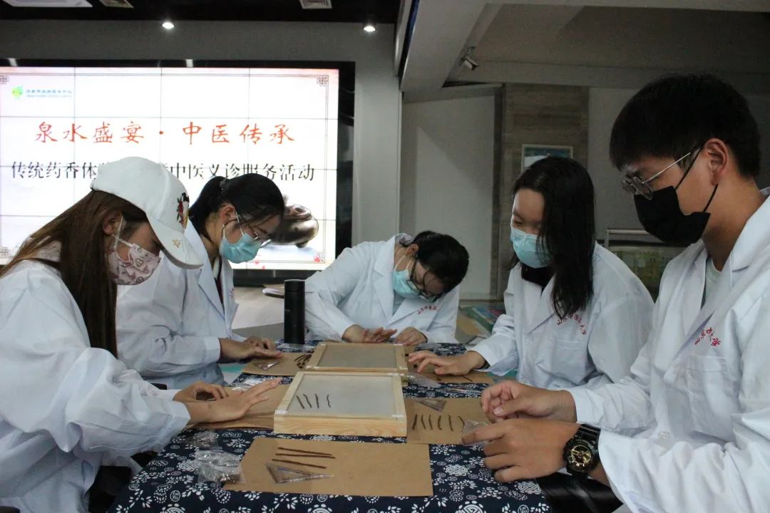 “针心灸行”社区服务队走进了济南市旅游服务中心,作为志愿者与济南市旅游服务中心联合槐荫区兴福街道房泽安惠民服务热线志愿者服务队、济南育华中学、合真之道·中华药香博物馆共同开展了以“泉水盛宴·中医传承”为主题的传统药香体验课堂暨中医义诊服务活动。