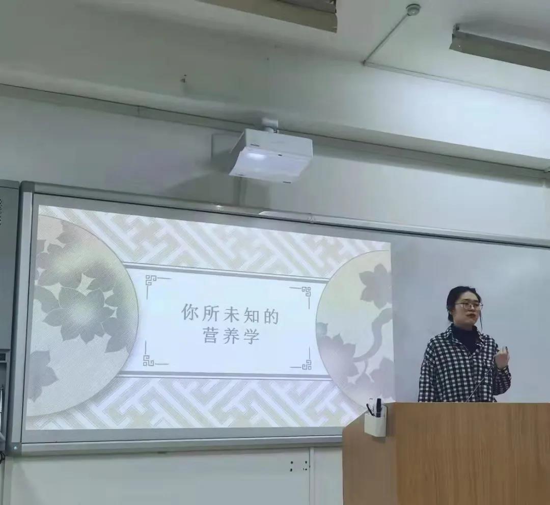 最后,魏阳虹向同学们讲解了如何进行营养搭配。她先是否定了生活中只吃大鱼大肉、加工精美的食物的现象,然后讲述了合理的饮食方案应遵守的原则。这使同学们对膳食搭配有了更专业、更深刻的理解。