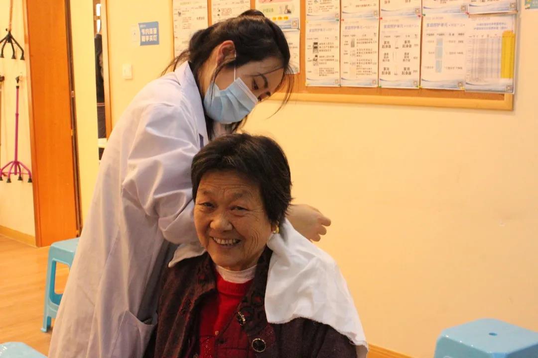 王奶奶:我之前跳广场舞的时候不小心伤到了肩膀,经过了治疗还是留下了一些后遗症。刚才同学给我的肩膀按摩后,我感觉舒服了很多,不适的症状也有所缓解。