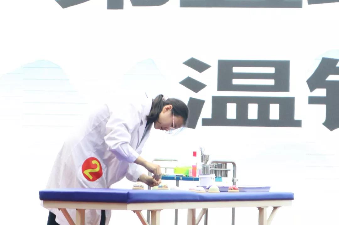 在温针灸环节,选手们将艾柱与针体结合,动作流畅娴熟,获得了台下观众的好评。