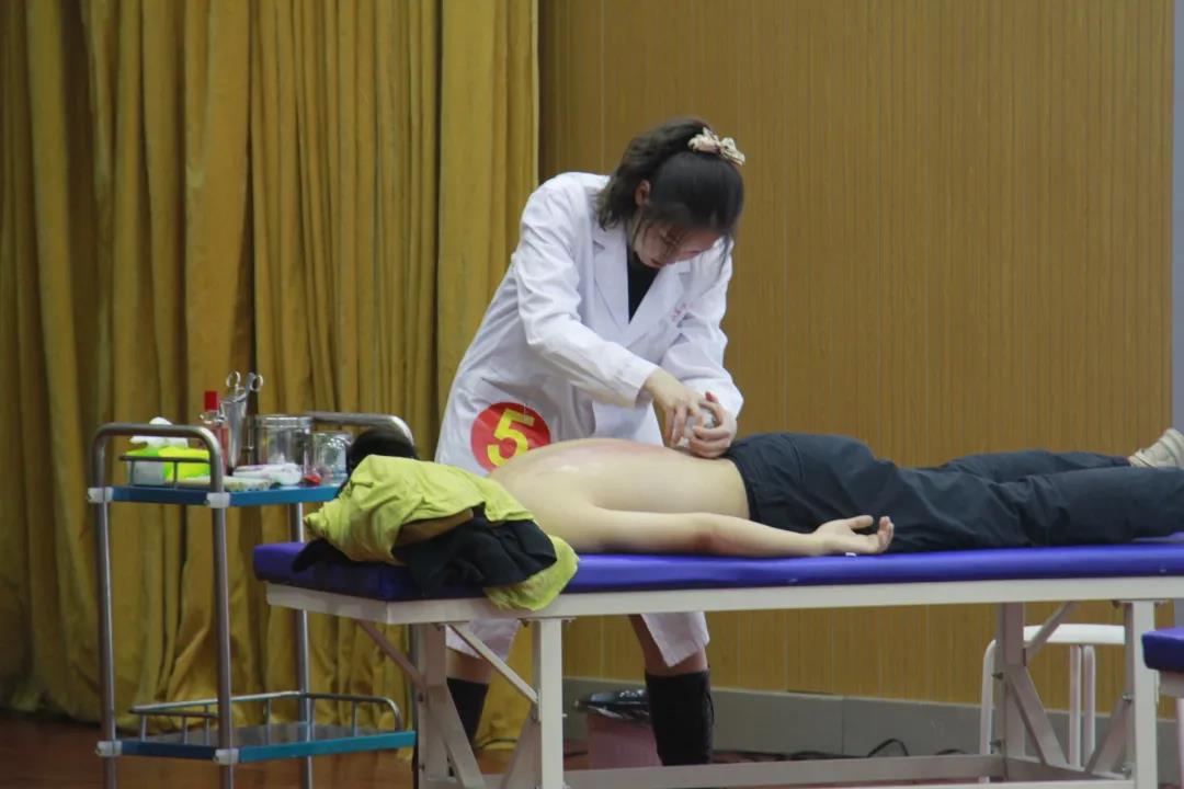 本次比赛分为腧穴定位及针刺、推拿、拔罐、艾灸、温针灸五个环节。