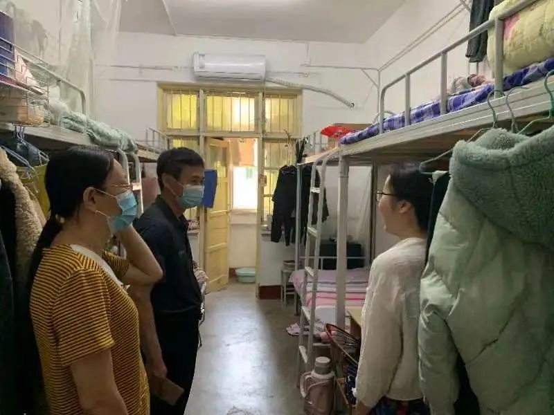 党总支书记王锋、党总支副书记张继伟、团总支(学工办)书记(主任)陈欣以及辅导员宋西鹏、宁鲁宁、张娜,对千佛山校区学生宿舍进行安全卫生检查。
