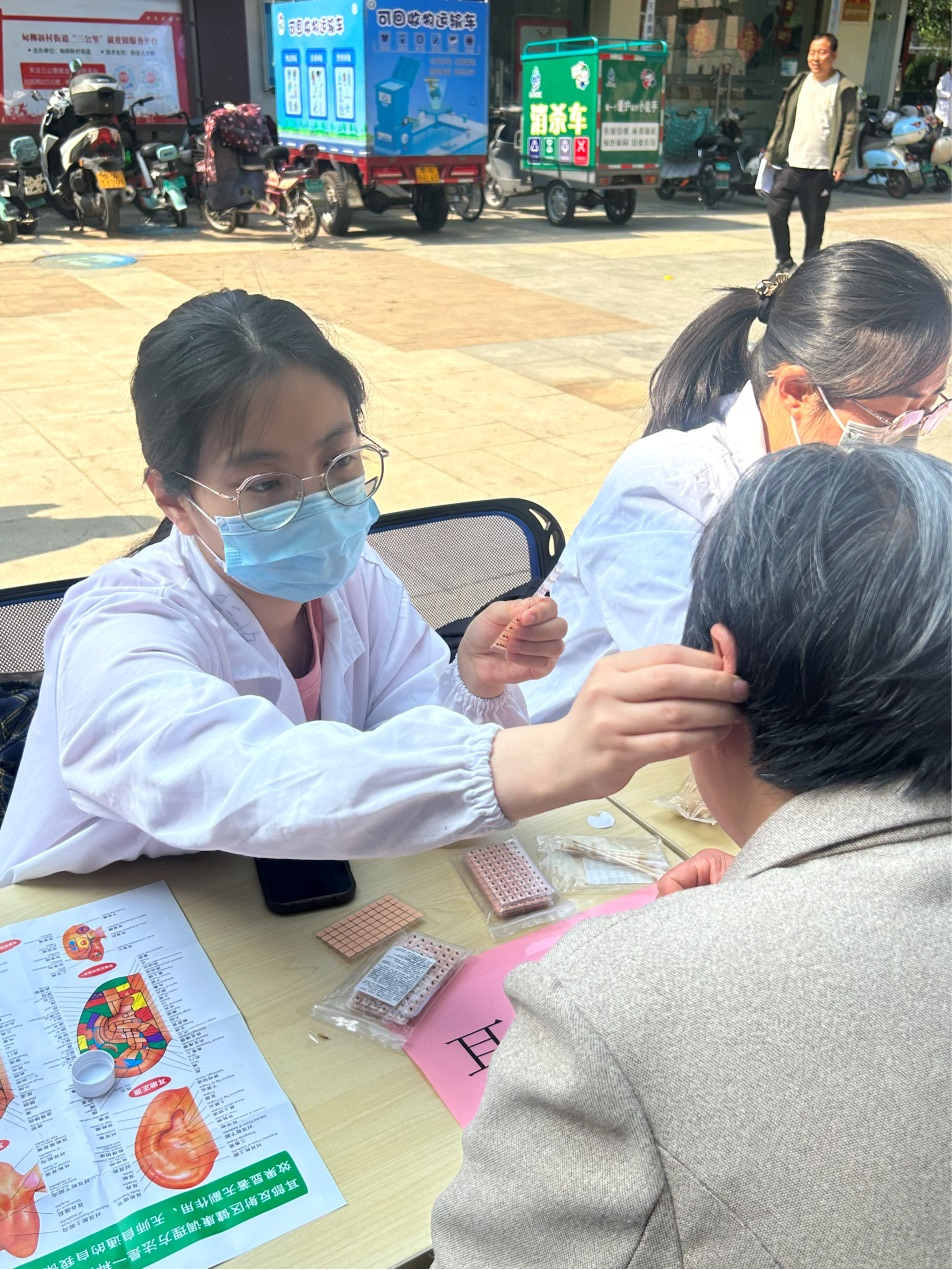 研究生党团义诊服务队的20余名志愿者,为社区居民提供了针推义诊项目,如推拿、耳穴压豆、量血压、健康咨询等诊疗服务。针对社区居民,尤其是患有颈肩腰腿痛的中老年居民,团队志愿者充分发挥所掌握的推拿技能予以治疗,并利用耳穴压豆技术为上述患者及其他患有耳鸣、耳聋、高血压、视物模糊、消化不良等病症的居民进行了针对性的治疗。另有不少居民就自身健康状况向团队志愿者咨询,志愿者们在四诊合参的基础上根据所学知识和临床经验热情给予了合理的健康指导,并就基层中医药文化传播情况进行了调研。