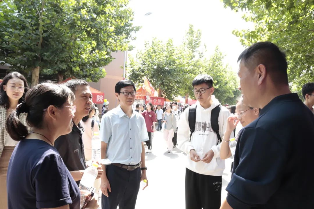 副处级组织员高巧林、副科级辅导员宁鲁宁、研究生新生辅导员袁月松与前来报到的新生亲切交谈,鼓励他们树立远大理想,锤炼过硬本领,珍惜时间,奋力拼搏。