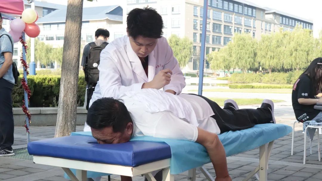 “针心灸行”社区服务队的师哥师姐展示了滚法、弹拨、膊揉、揉法等推拿手法,并为新生和家长们提供推拿和拔罐等服务,使新生更加了解专业学习内容,增添对专业课程学习的期待。