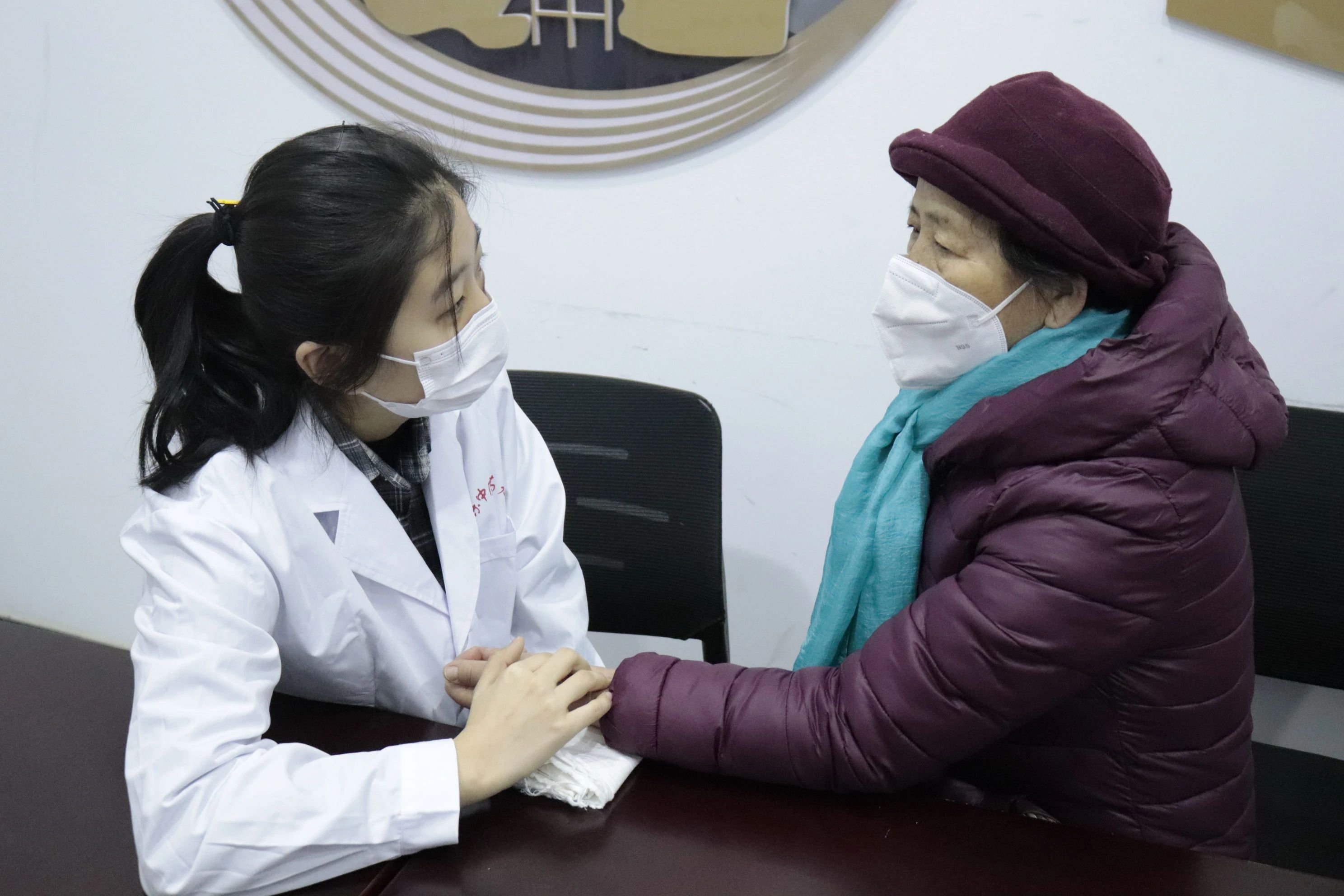 在义诊现场,成员们根据居民们不同的症状采用肘揉、弹拨、㨰法等推拿手法来缓解疼痛,经过推拿服务,居民们纷纷表示身上的酸乏胀痛有了很大程度的缓解,同时服务队成员还给老人们提供了一些生活养生建议。不仅如此,压耳豆、量血压、诊脉等各项服务也在有条不紊地进行,体验过的居民都对同学们细致入微的服务交口称赞。