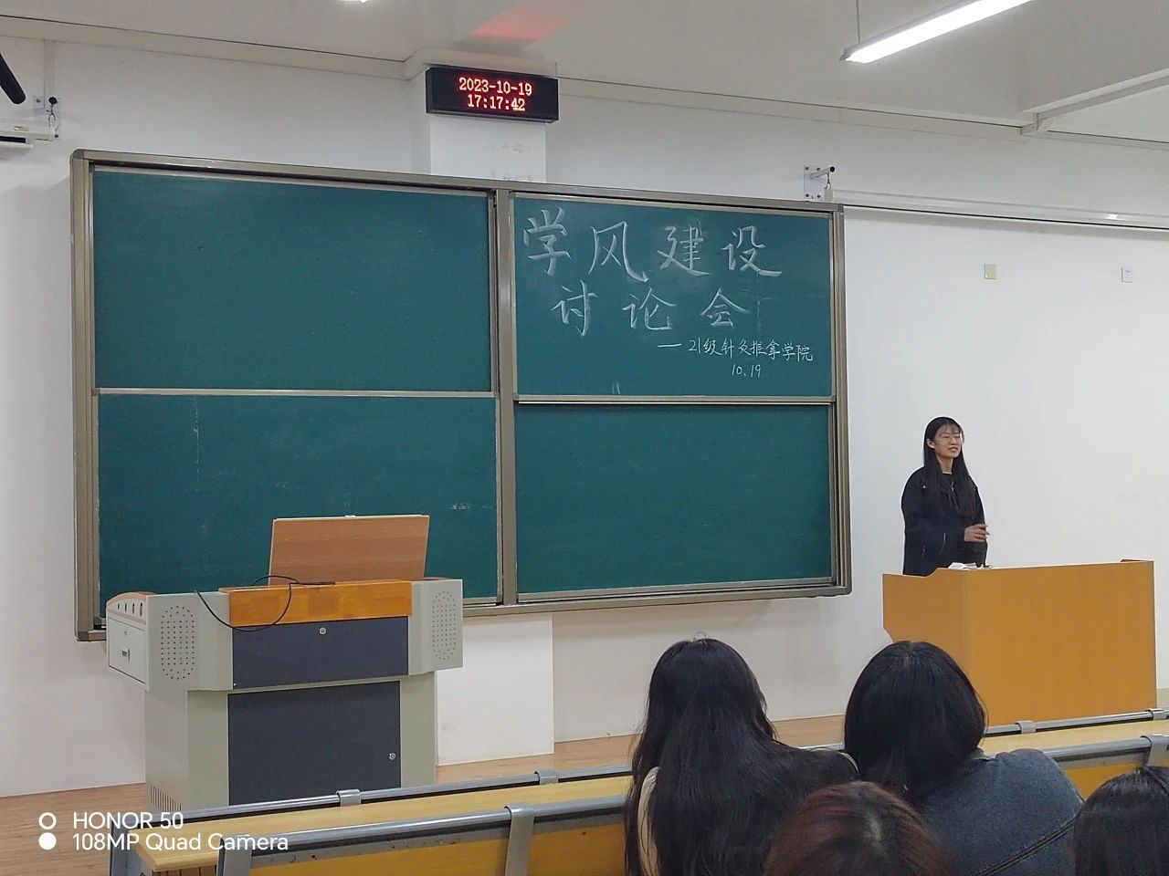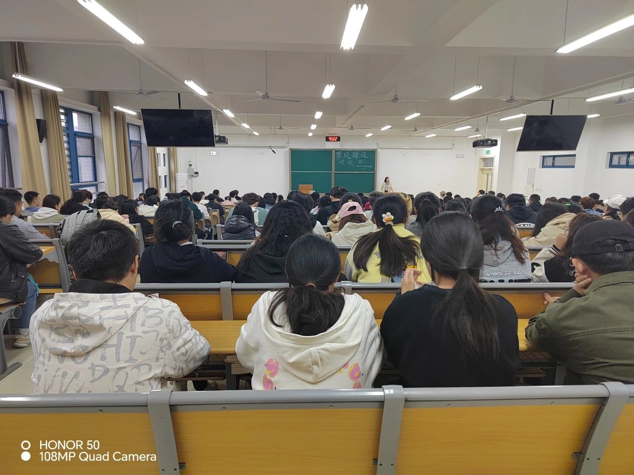 辅导员宋西鹏老师以班级为单位进行学风建设讨论会,将“学风建设”作为目标和出发点,探讨可行的实施路径,并以任务为导向提出具体的工作要求:在思想上树立学风意识,激发同学们的内生动力;课堂带动学习氛围,与带教老师积极互动;全员渗透学风观念,“辅导员—学生—任课老师”协调联动,让优良的学风能成为激励大家奋发向上、锐意进取、开拓创新的强大精神力量。