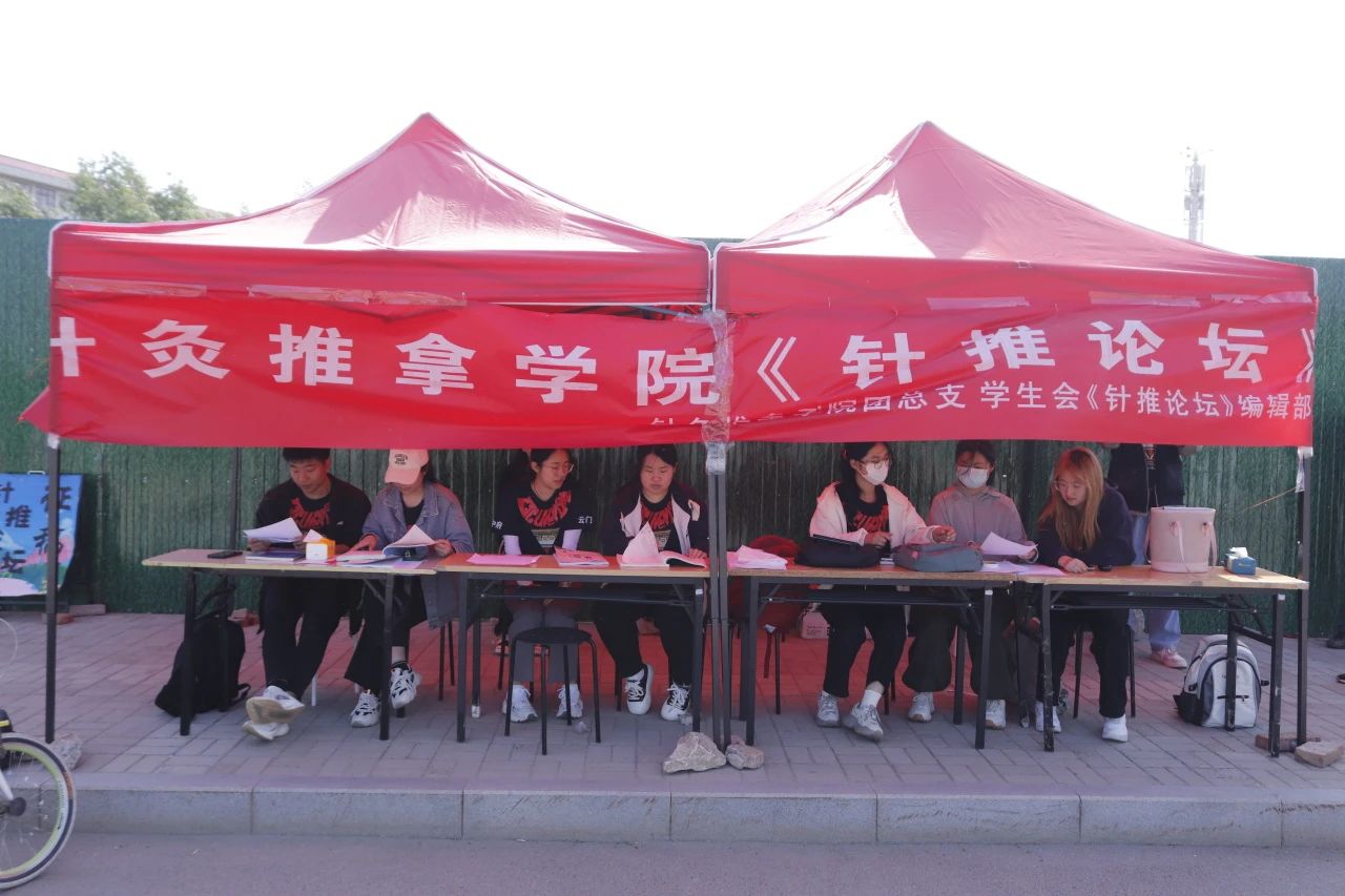 学生会编辑部在健桥摆摊开展第二十二期《针推论坛》的征稿宣传活动。