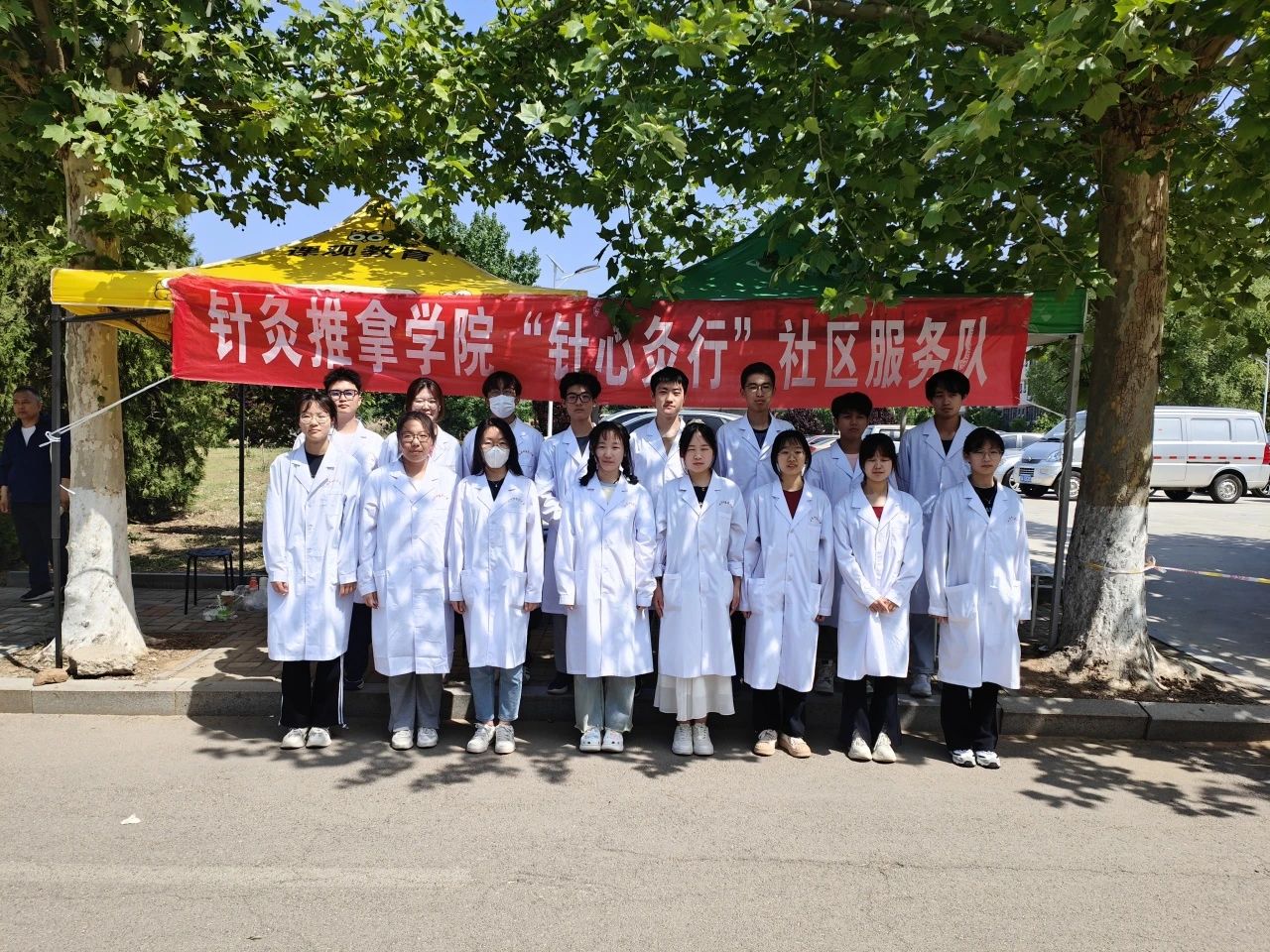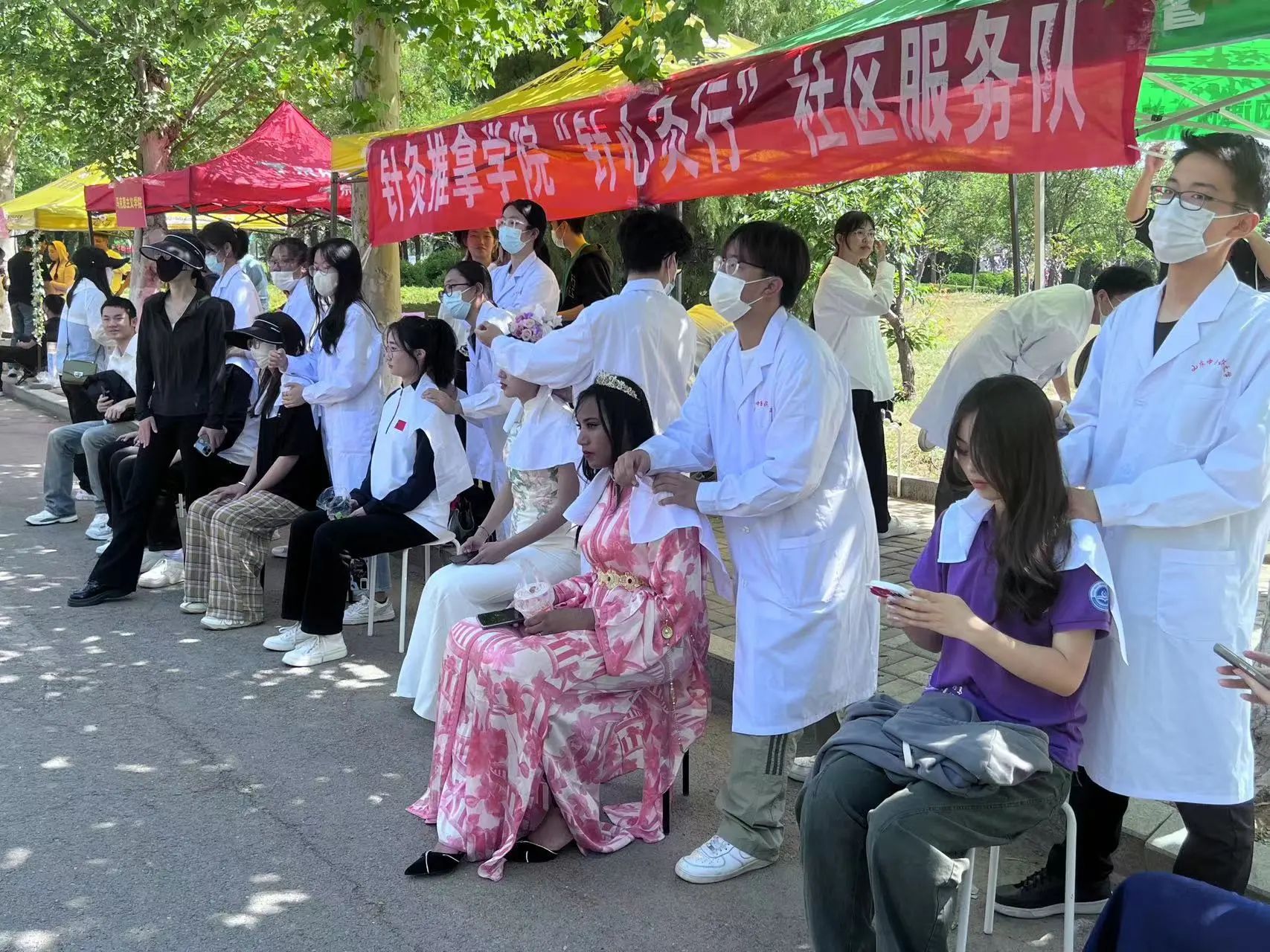 “针心灸行”社区服务队在北田径场入口处开展了义诊活动。