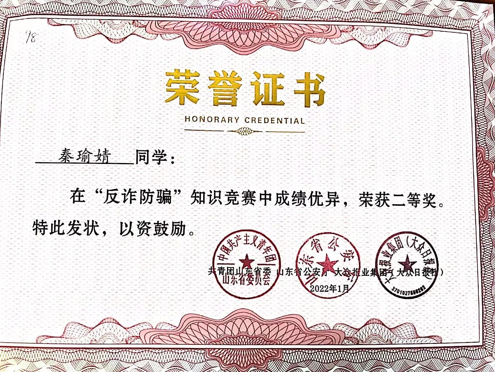 向外探寻,向内思考。我不断在创新创业竞赛领域深耕,对于我来说,每一次想到一个新的创新点,完成一份新的计划书都像是一场未知的冒险,正如一块好材料必得历经千锤百炼方可成型,冒险既有成功,也难免失败。但这并不会磨灭我结合自身专业能力参加创新创业比赛的兴趣,也正是在这段冒险中,我获得了属于自己的第一个省级奖项——第十三届山东省大学生创业计划大赛二等奖,后续接连斩获了“有人杯”第九届山东省物联网创造力大赛三等奖等奖项。在现在看来,虽然前行的过程中会遇到挫折,也充满不确定性,但我却一直在为自己的梦想和初衷而努力着,也尝到了一颗颗甘甜的果实。
