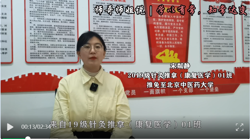 本次主讲人是来自2019级针灸推拿(康复医学)01班,推免至北京中医药大学的宋粼静师姐,被评为2023年韩国三级