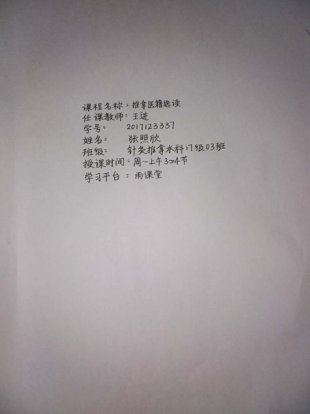 17级针灸推拿学本科3班张照欣同学学习笔记