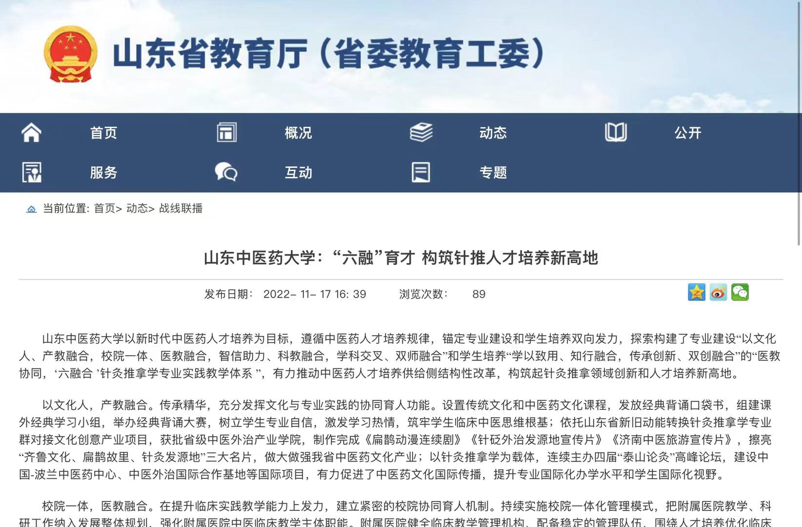 ,制作完成《扁鹊动漫连续剧》《针砭外治发源地宣传片》《济南中医旅游宣传片》,擦亮“齐鲁文化、扁鹊故里、针灸发源地”三大名片,做大做强我省中医药文化产业;以针灸推拿学为载体,连续主办四届“泰山论灸”高峰论坛,建设中国-波兰中医药中心、中医外治国际合作基地等国际项目,有力促进了中医药文化国际传播,提升专业国际化办学水平和学生国际化视野。