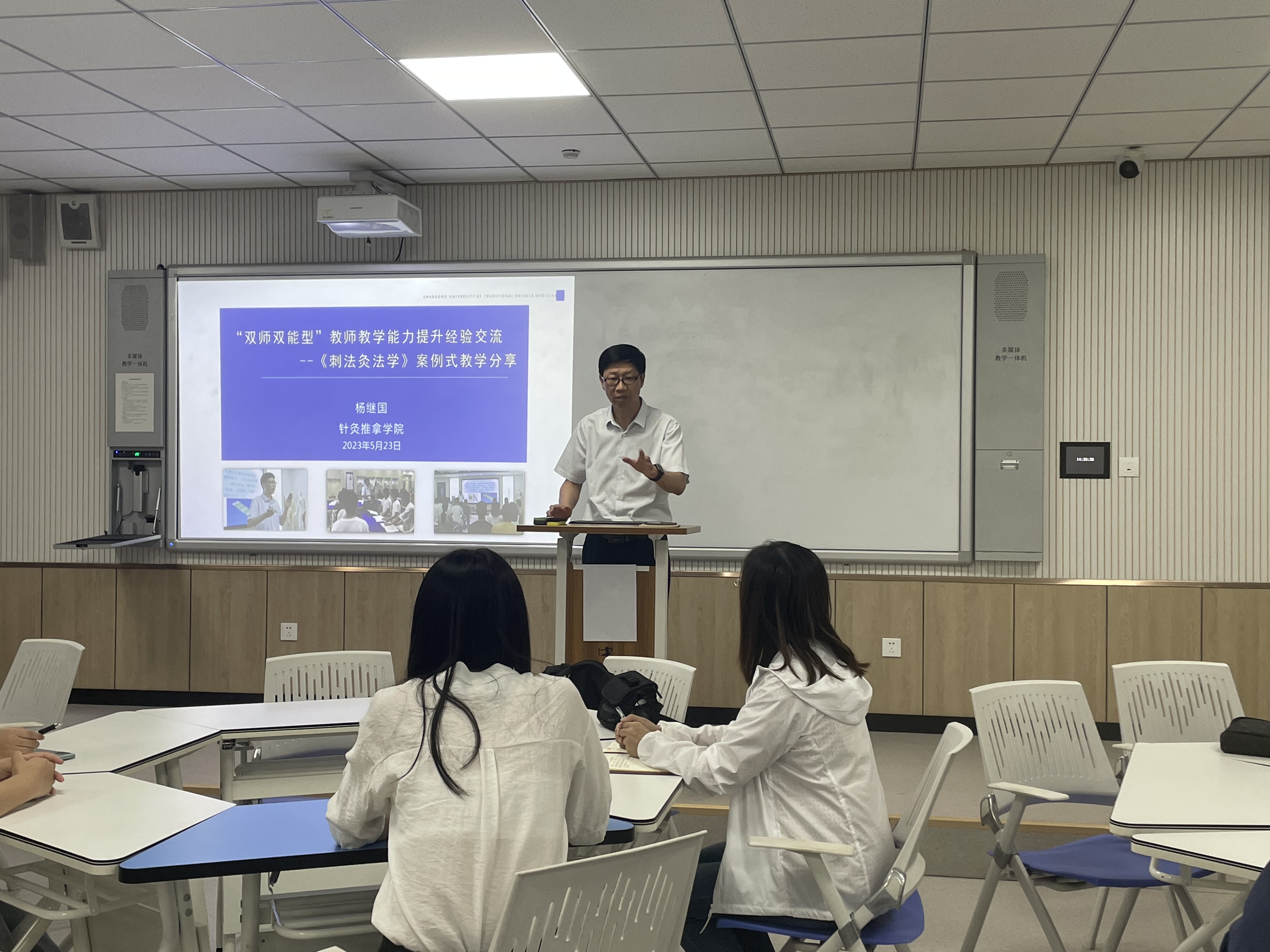 杨院长首先结合自身经历和督导听课中存在的问题,从案例教学法的起源发展、优势、实施过程等方面,结合刺法灸法学的课程特点,以芒针法为例进行了案例分享,强调在教学过程中要“教”与“学”紧密结合,重视教学效果,为此,教学法尤为重要。讲座后,杨院长与青年教师们展开了热烈的分享互动,深入浅出地与青年教师们交流如何掌握正确的教学方法、课堂教学应注意的问题、多媒体课件制作的体会等方面的经验和心得,对大家提出的如何选择适合案例、如何与学生建立良好沟通、如何平衡教学与科研工作等问题进行了细致耐心的解答。