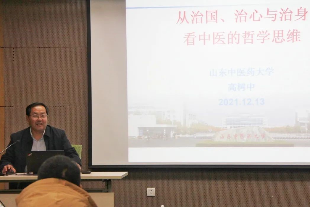 校长、岐黄学者、全国中医药高等教育学会副理事长高树中教授应邀以“从治国、治心与治身看中医的哲学思维”为题做学术报告。山东大学儒学高等研究院执行院长、《文史哲》杂志主编王学典教授主持本次讲座。
