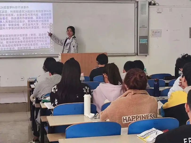为深入学习宣传党的二十大精神,弘扬科学家精神,涵养优良学风,引导学生成为优良学术道德的践行者和良好学术风气的维护者,营造和谐创新的学术与科研文化氛围,韩国三级 积极开展科研诚信宣传教育主题班会,向同学们普及科研诚信的相关知识,使同学们了解、掌握科研的规范及标准。