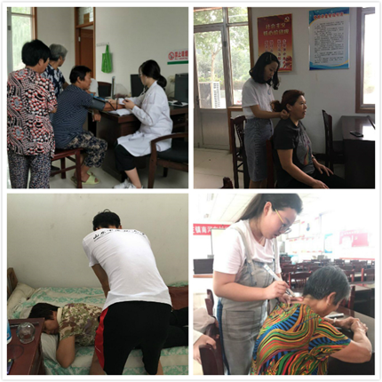 杏林医夏爱心医疗服务队,来到泰安市泰山区夏张镇下官庄村,结合师生们的专长,为村民们提供测量血压、推拿、艾灸、拔罐等医疗服务;通过发放健康知识宣传单页和口头讲解等方式向居民们宣传健康常识及国家基本医疗政策,并提供健康咨询;通过讲座,介绍夏季常见病的预防和夏季食疗方,进行了夏季养生知识的科普,受到居民的好评。