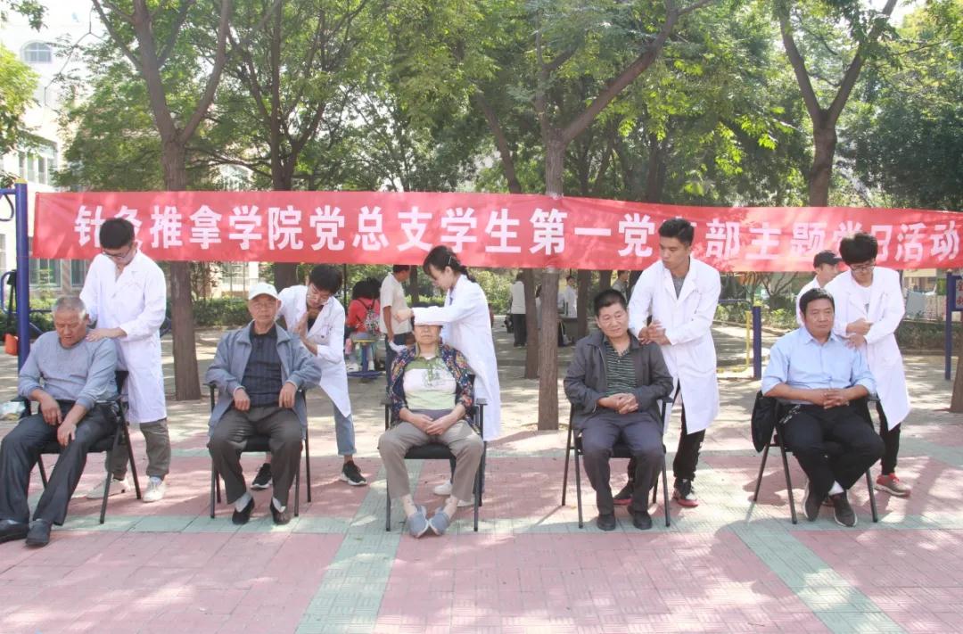 学生第一党支部、针心灸行社区服务队结合专业特色,在济南市长清区文昌社区开展了主题党日活动。