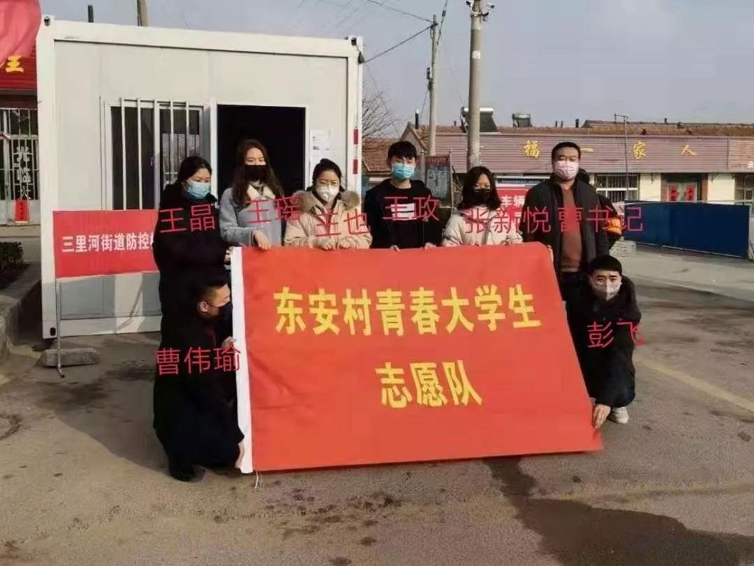 王也,针灸推拿(专升本)19级01班。该生家住山东省青岛市胶州市三里河办事处东安村,由于新冠病毒的突然袭来,参与了村大学生抗疫志愿队。于2020年1月29日—2020年2月4日期间,按时去村里安排的站点上岗,对进出车辆和人员量体温,并对没有戴口罩的村民进行教育并给予口罩。同时由于所学专业,空闲时间为其他志愿者进行推拿保健.