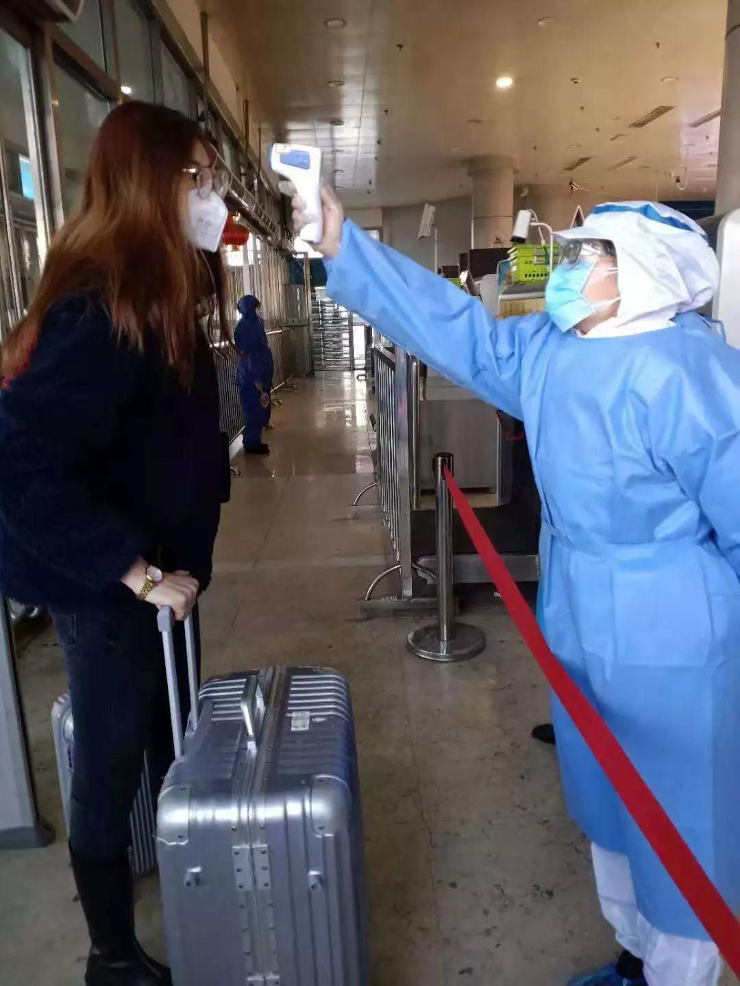 王子妍,针灸推拿本科(英语)2018级02班。该生家住淄博市张店区,看到高中班级群里发布的抗击疫情号召通知,作为有医学基础的王子妍第一时间联系到了当地的区团委,经过层层选拔成功当了一名群众志愿者,她的工作岗位是在火车站进站口,工作内容包括安检、测温、异常登记等。穿上了笨拙的防护服的她一站就是7个多小时,按照王子妍的话说就是“能者多劳”,家里的父母十分支持,她觉得自己当志愿者很光荣。