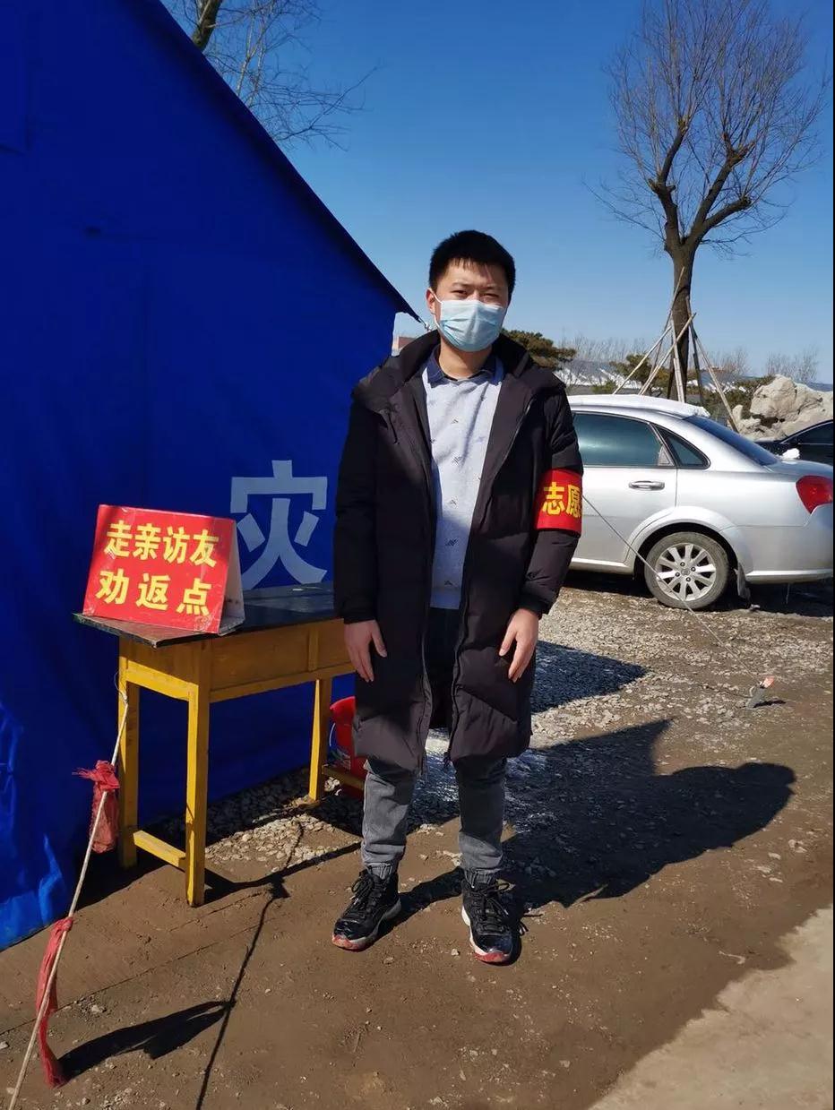 焦体勇,中医学(八年医)(针灸推拿)2014级01班。该生家住济南市商河县白桥乡焦家村,在村里接单镇政府1月26号全面封村开始,该生报名担任志愿者,早八点至晚八点,两三人一组,两小时一班,在村口,严控进出入人员登记,体温测量,近期路线登记等,2月8号开始,加夜班值班人员,任何人不得出入。