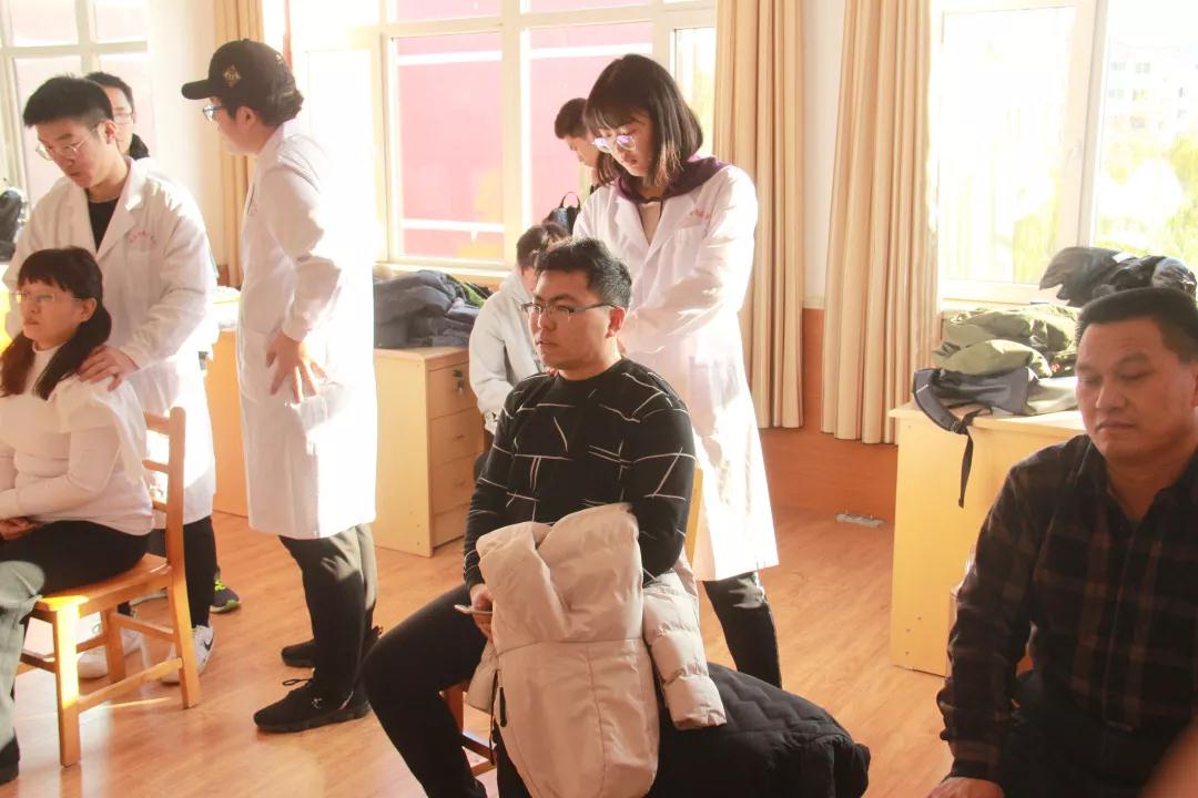 冬日寒冷,但此时的“教工之家”里却温暖如春。义诊的队员热情体贴地为教师们进行推拿,熟练的手法获得了教师们的一致好评和信任。此外,队员们还为教师们提供了量血压服务。