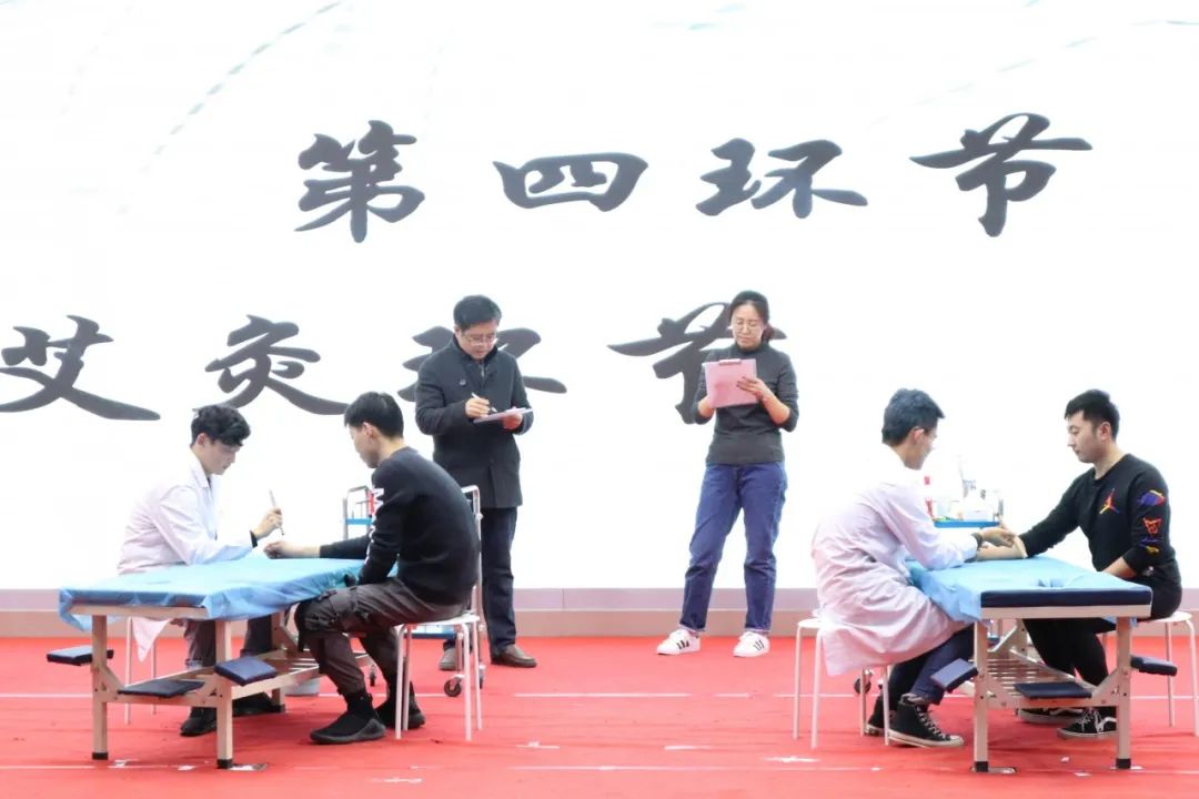本次比赛分为腧穴定位及针刺、推拿、拔罐、艾灸四个环节。