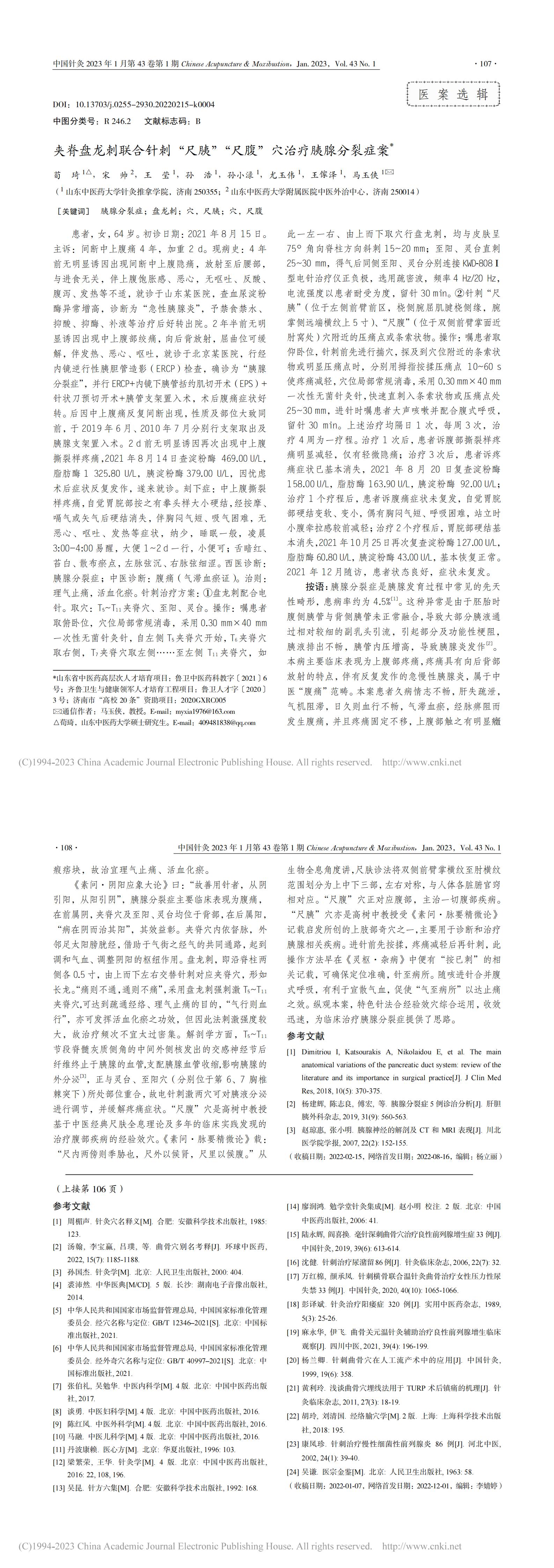 夹脊盘龙刺联合针刺“尺胰”“尺腹”穴治疗胰腺分裂症案