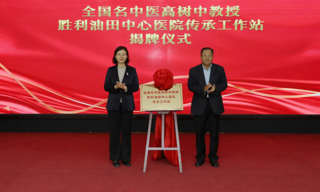 10月28日,全国名中医高树中教授传承工作站揭牌仪式在胜利油田中心医院举行。全国名中医、首届岐黄学者高树中,东营市卫生健康委党组成员、副主任张娟,医院党委副书记、副院长陈玉东,党委委员、副院长王明鑫出席会议。